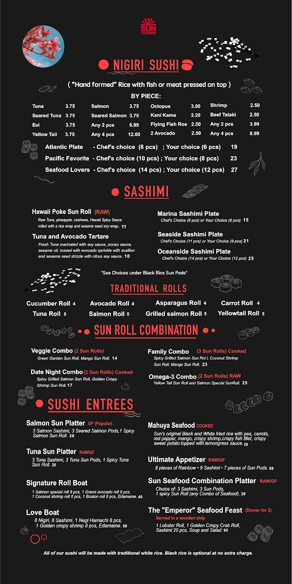 Welcome to Sun Cuisines, a hidden gem located at 5759 Main St, Williamsville, NY. Here, the artistry of sushi meets the vibrant flavors of Burmese cuisine. Their menu is a delightful fusion, showcasing an impressive array of dishes designed to tantalize your taste buds.